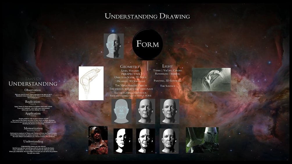 Understanding Drawing is the culmination of over 6 years of research, investigation, testing, practice, failing and learning. During this time I’ve taken hundreds of courses, gone through hundreds of tutorials and demos from different artists, read a multitude of books, trying to piece together what it is that I need to do in order to improve my art. I’m self-taught, I’d never taken art classes before, didn’t draw as a kid and started at 25 with 0 previous experience and no idea what I’m getting myself into. Sometimes I got it right – very often though – I got it wrong.